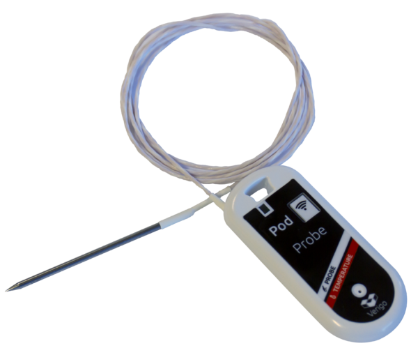 Data logger per Temperatura Verigo POD Probe , con sonda esterna a punta e cavo di 2 metri di lunghezza, per garantire alte prestazioni in ogni ambiente.