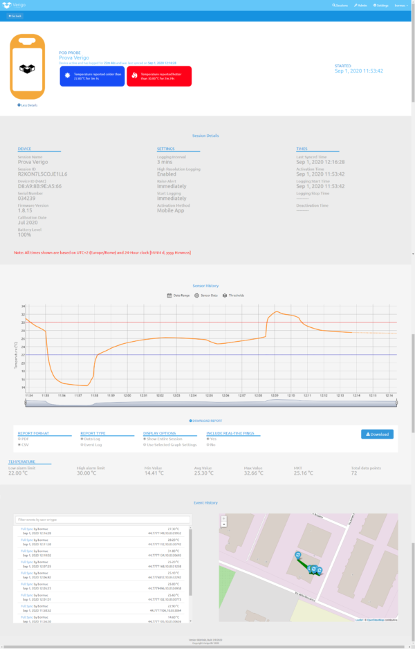 Il Datalogger Verigo POD Probe, salva e sincronizza automaticamente tutti i dati registrandoli sul cloud, in modo sicuro e accessibile ovunque l’utente si trovi.