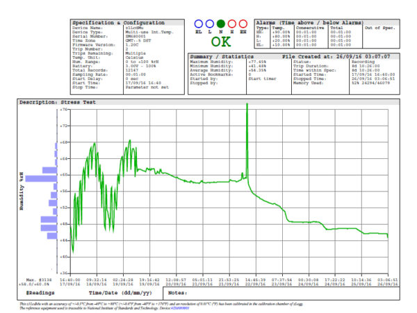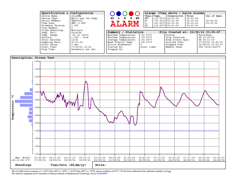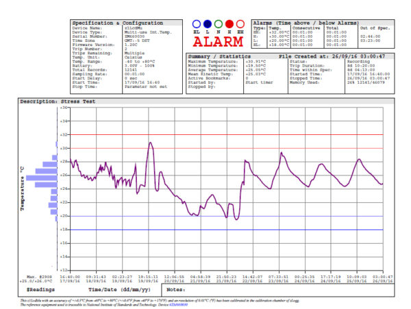Quando connessi ad una porta USB del PC, i logger XS mini generano automaticamente un report PDF in formato grafico.