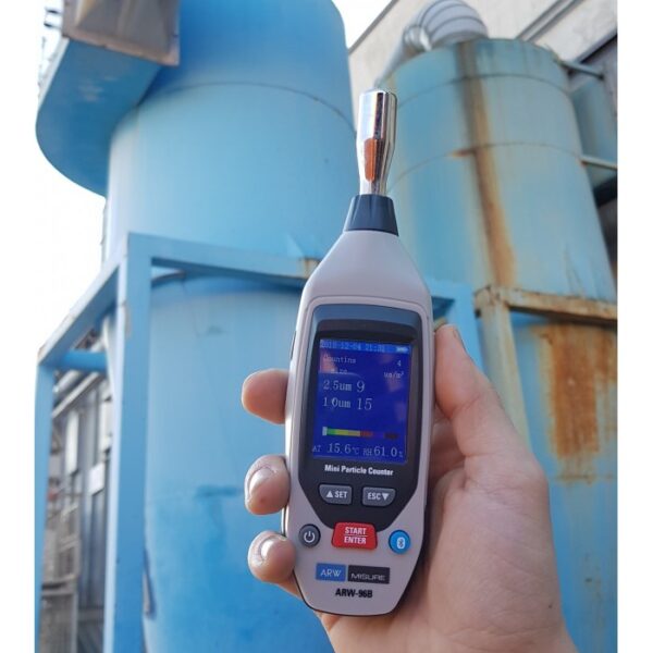 Contatore di particelle portatile ARW- 96 con display a colori LCD TFT da 2,0” retroilluminato per letture veloci, facili e precise della concentrazione di polveri sottili in due livelli di misura (PM2.5/PM10).