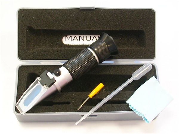 Rifrattometro, a doppia scala per misurare il contenuto di zucchero nei mosti.